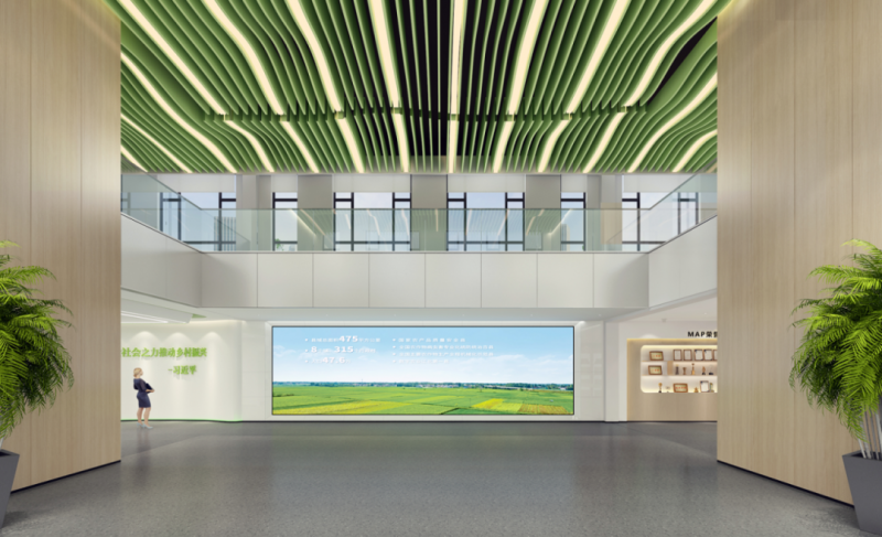 奧揚(yáng)善于透過(guò)客戶視角洞悉市場(chǎng)需求的關(guān)鍵所在,在藝術(shù)與商業(yè)之間找到平衡。奧揚(yáng)在桓臺(tái)數(shù)字農(nóng)展門(mén)廳設(shè)計(jì)上方做了綠色麥浪的造型,象征著綠色,象征著未來(lái),象征著希望,麥浪起伏,猶如海洋般涌動(dòng),目標(biāo)未來(lái),揚(yáng)帆起航。